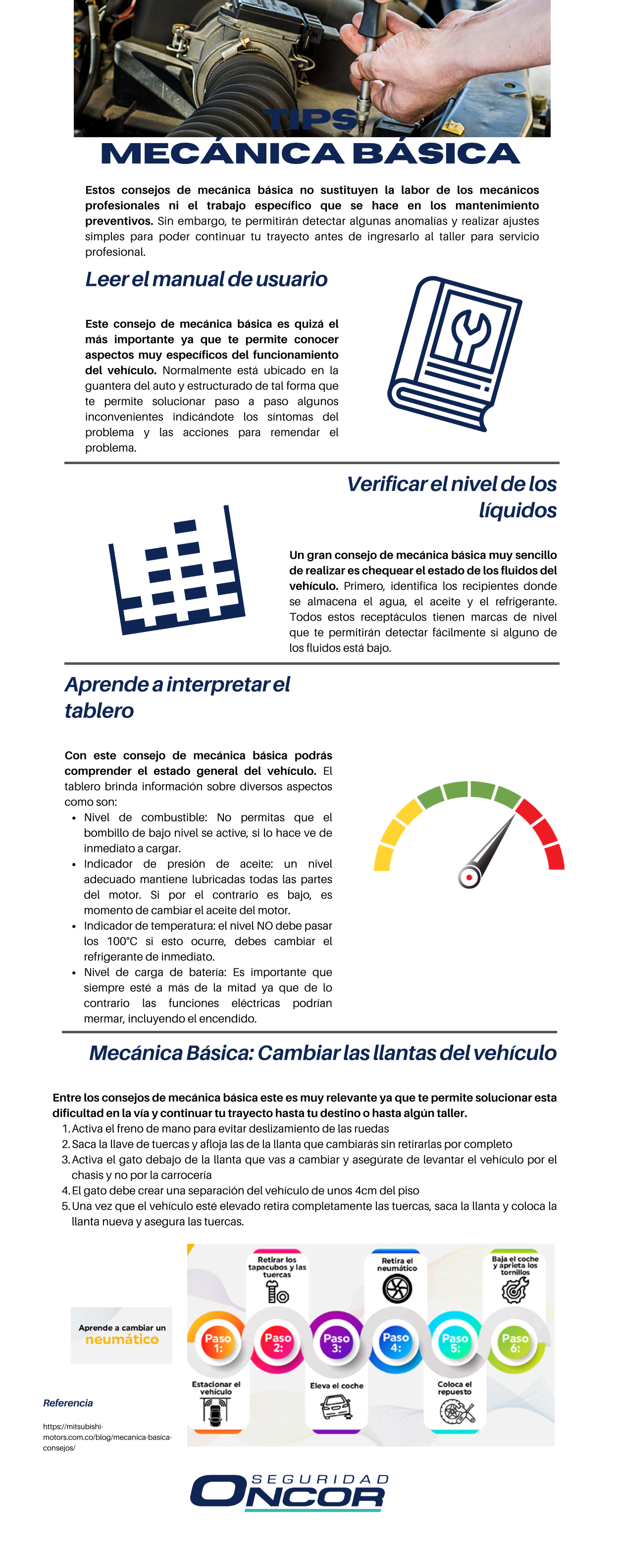 Consejos de mecánica básica que te permiten solucionar dificultades en la vía y continuar tu trayecto hasta tu destino o hasta algún taller.